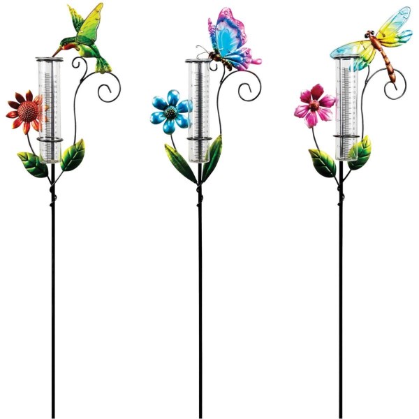 Alpine 36 In. H. Metal Stake Decorative Glass Rain Gauge