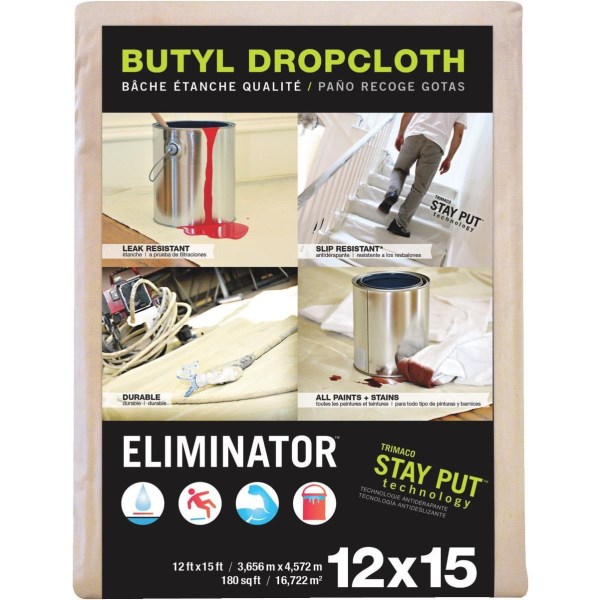 Trimaco Eliminator Butyl-Back Canvas 12 Ft. x 15 Ft. Heavy-Duty Drop Cloth