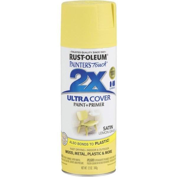 Rust-Oleum Painter’s Touch 2X Ultra Cover 12 Oz. Satin Paint + Primer Spray Paint, Lemon Grass