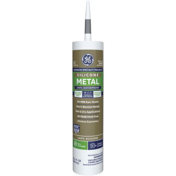 GE Metal Silicone 2 Sealant, Metallic Grey, 10.1 Oz.