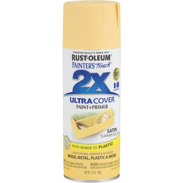 Rust-Oleum Painter’s Touch 2X Ultra Cover 12 Oz. Satin Paint + Primer Spray Paint, Summer Squash