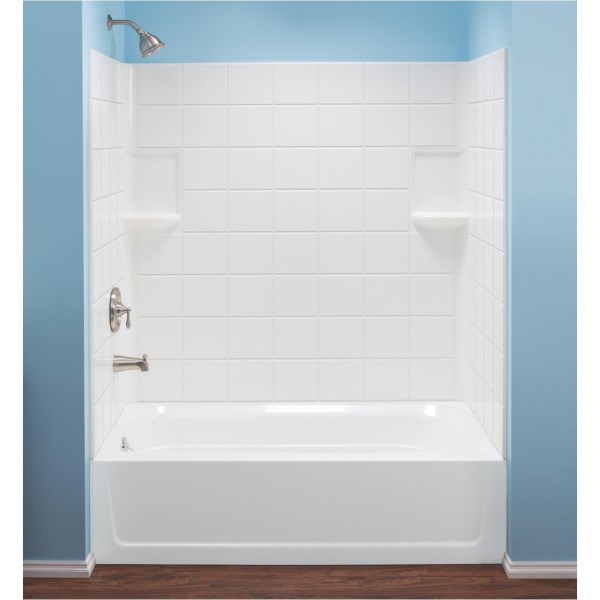 Mustee Topaz 3-Piece 60 In. L x 30 In. D (Bathtub) Tub Wall Kit in White (Tile Pattern)