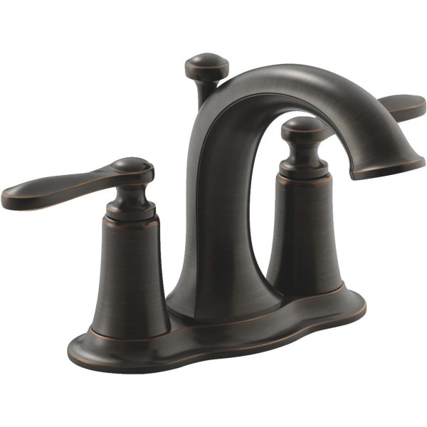 Kohler Linwood Oil-Rubbed Bronze 2-Handle Lever 4 In. Centerset Bathroom Faucet with Pop-Up