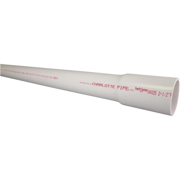 Charlotte Pipe 2-1/2 In. x 20 Ft. Cold Water Schedule 40 PVC Pressure Pipe, Belled End