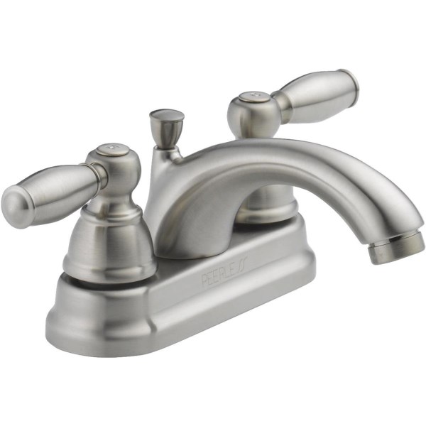 Peerless Claymore Brushed Nickel 2-Handle Lever 4 In. Centerset Bathroom Faucet with Pop-Up
