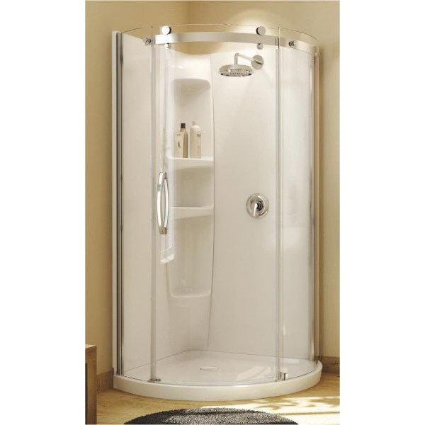 Maax Olympia 39 In. W x 71-3/4 In. H Chrome Framed Clear Glass Corner Shower Door w/Base