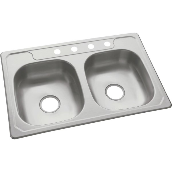 Sterling Middleton Double Bowl 33 In. x 22 In. x 6 In. Deep Stainless Steel Top Mount Kitchen Sink