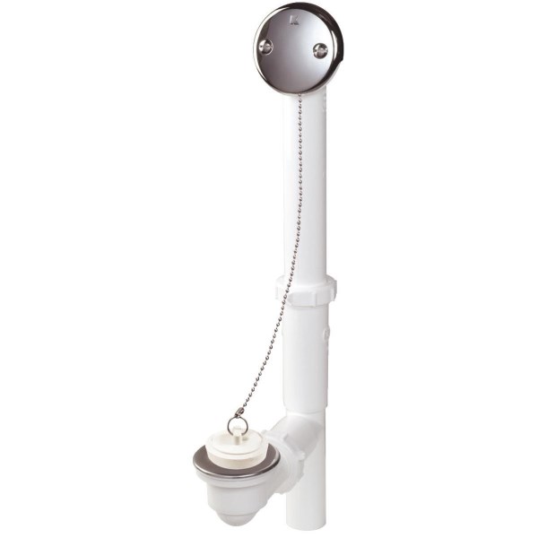 Keeney Plastic Bath Drain with Polished Chrome Trim and Chain and Stopper