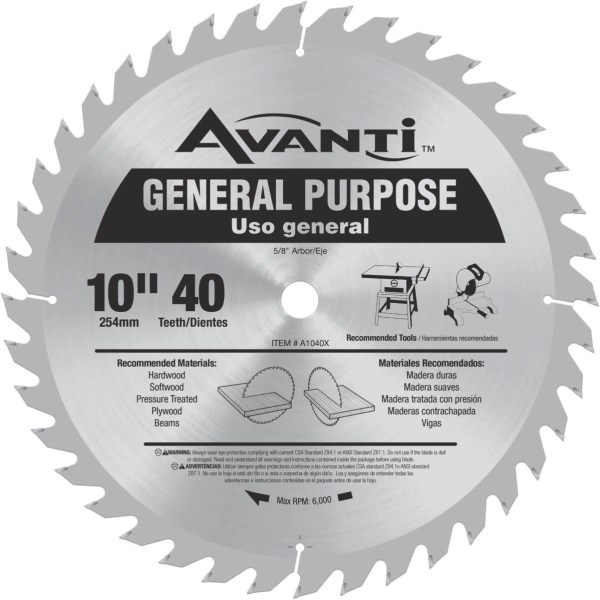 Avanti 10 In. 40-Tooth General Purpose Circular Saw Blade