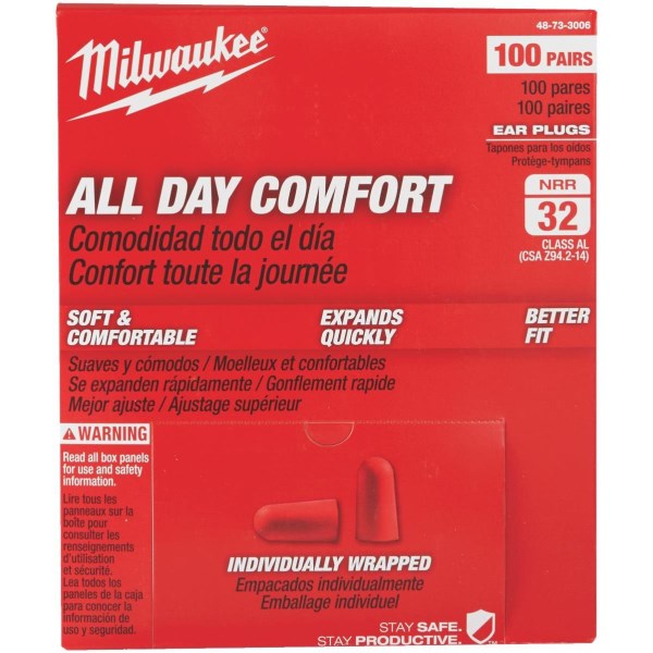 Milwaukee Foam 32 dB Individually Wrapped Ear Plugs (100-Pair)