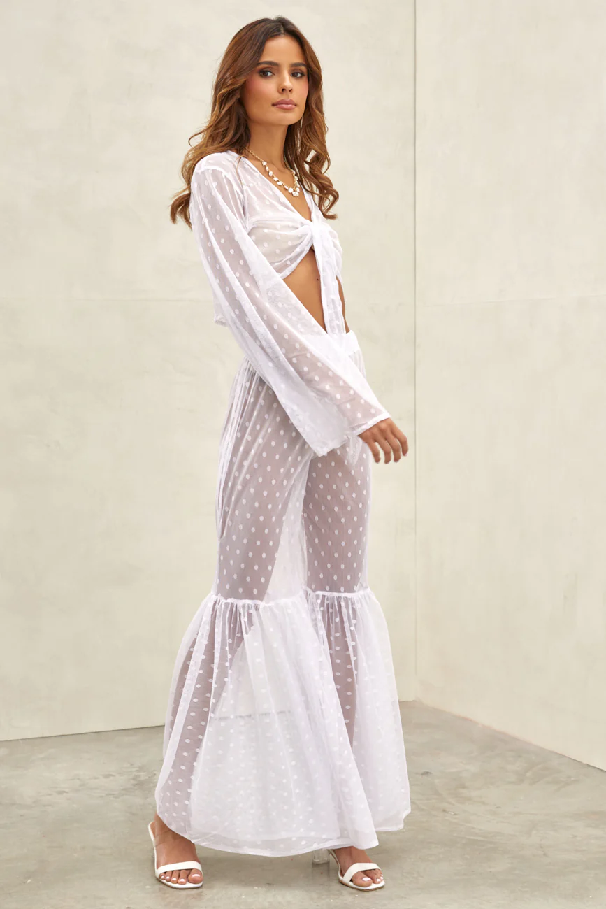 Kaii Polka Dot Tie Front Top White