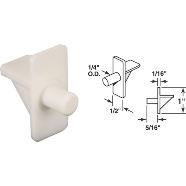Prime-Line 1/4 In. White Plastic Shelf Support (8 Count)