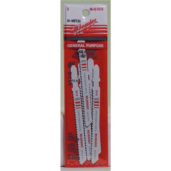 Milwaukee T-Shank 4 In. x 10 TPI Bi-Metal Jig Saw Blade, Wood with Nails (5-Pack)