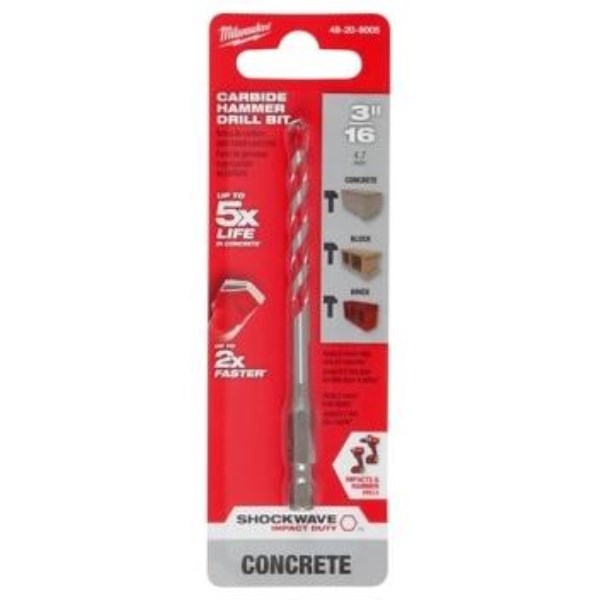 Milwaukee SHOCKWAVE 3/16 In. x 4 In. Carbide Masonry Drill Bit