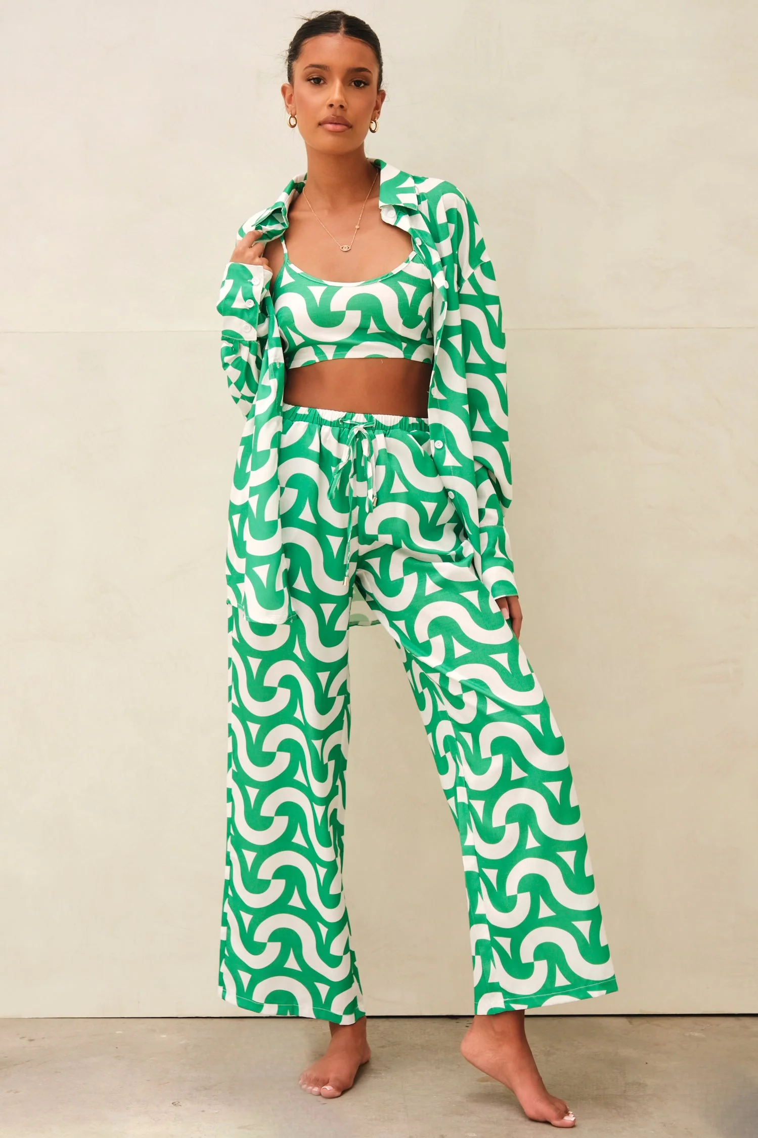 Hollie Geometric Crop Top Green & White
